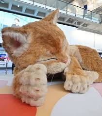 La figura, de aproximadamente ocho metros de altura, representa a un gato naranja en posición de descanso y forma parte de una serie de actividades temáticas por la temporada de Pascua.