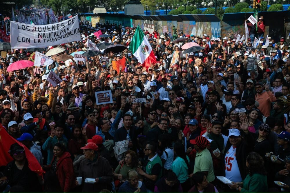 La marcha fue comparada por algunos asistentes con la concentración realizada en la despedida del expresidente Andrés Manuel López Obrador, destacando la presencia de miles de personas en los accesos a la plaza pública.