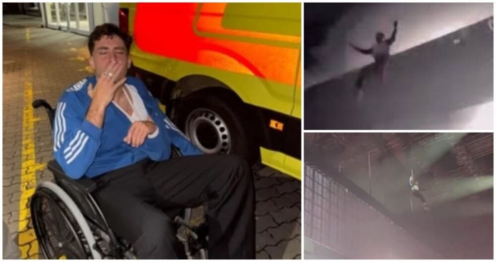 Tras el golpe, la música se detuvo y el público quedó en silencio. Delaossa permaneció tendido en el suelo por algunos segundos mientras personal técnico y sanitario se acercaba para atenderlo.