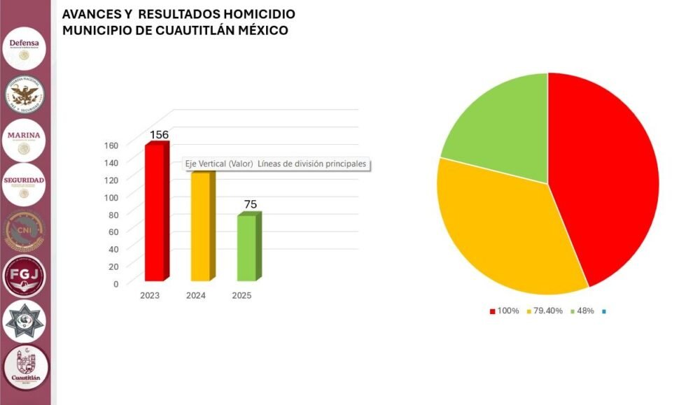El Gobierno Municipal de Cuautitlán informó que, como resultado de las estrategias implementadas en materia de seguridad pública, se ha registrado una disminución en los delitos de homicidio y robo de vehículo durante 2025, en comparación con el año anterior.