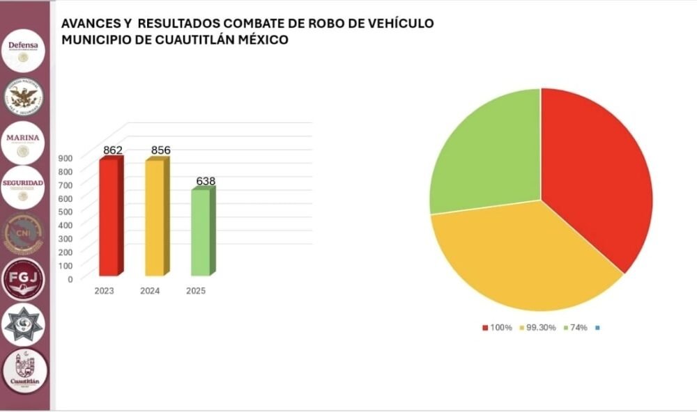 El Gobierno Municipal de Cuautitlán informó que, como resultado de las estrategias implementadas en materia de seguridad pública, se ha registrado una disminución en los delitos de homicidio y robo de vehículo durante 2025, en comparación con el año anterior.