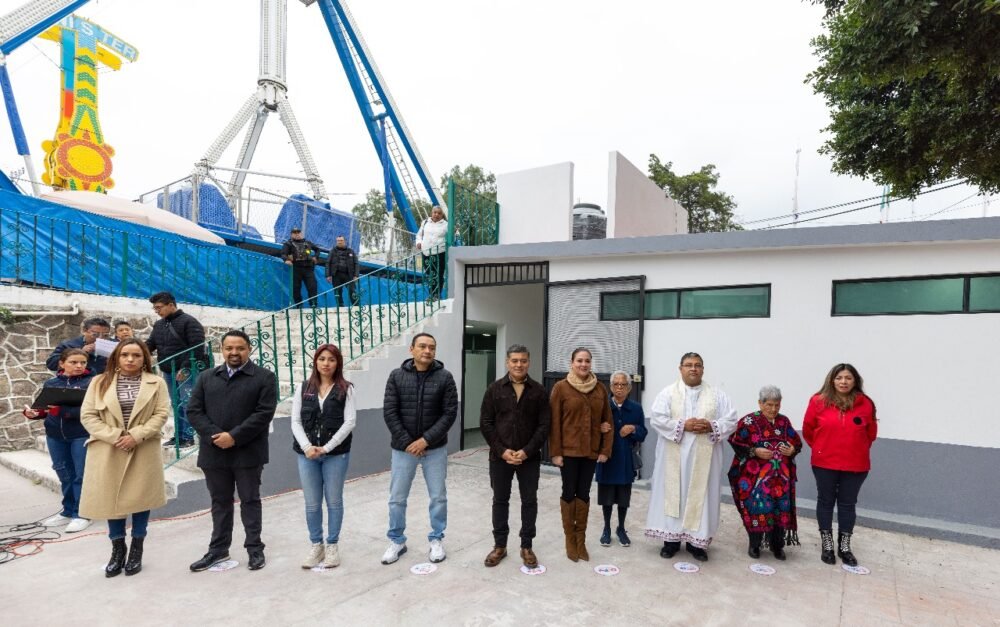 Posteriormente, el presidente municipal, acompañado por funcionarios y el grupo de San Francisco de Asís, encabezó la inauguración de los baños públicos renovados en la plaza local. El padre Paulo bendijo las instalaciones y reconoció el esfuerzo por mejorar los espacios públicos.
