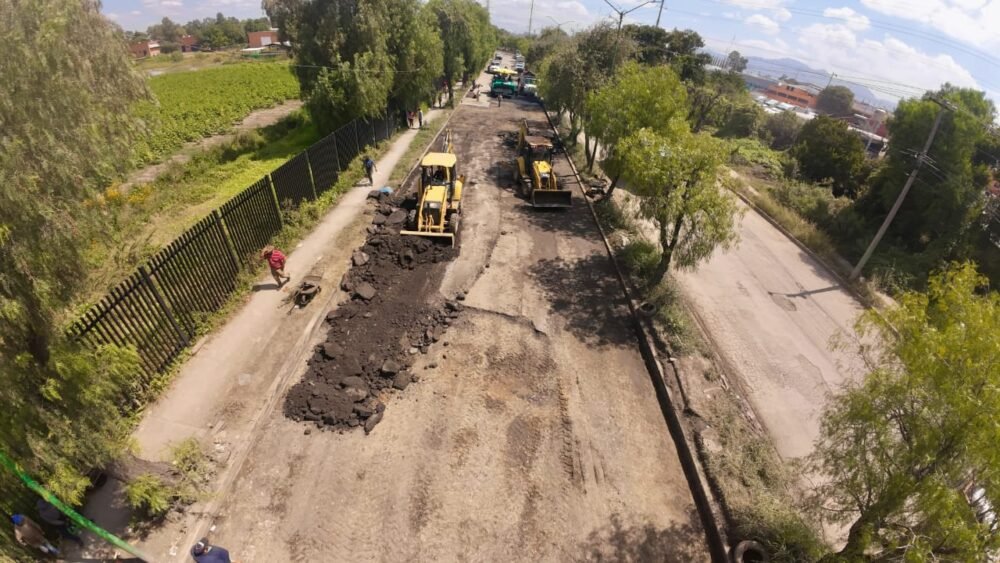 Este miércoles en la avenida Jiménez Gallardo ya se cuenta con dos retroexcavadoras, siete camiones de volteo, una fresadora y demás maquinaria para cumplir con el acuerdo de bacheo, labores en las que se aplicarán 205 toneladas de mezcla asfáltica en una superficie de 1,170 m2.