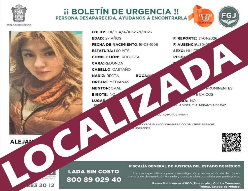 Tras un operativo de búsqueda, autoridades municipales confirmaron la localización con vida de Alejandra Rojas Báez, vecina de Jilotzingo, y de su primo Noé Jacob Pérez Rojas, quienes habían sido reportados como extraviados tras ser vistos por última vez en un bar de Ciudad Satélite, en el municipio de Naucalpan.