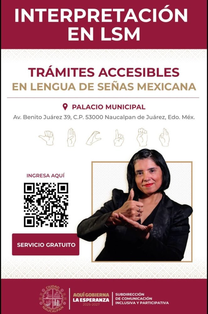 Entre las iniciativas se encuentra la puesta en marcha del Servicio de Relevo, un mecanismo que facilita la comunicación entre personas sordas y las dependencias municipales, con el objetivo de garantizar el acceso a la información y a los servicios públicos dentro del Ayuntamiento. Con esta medida, Naucalpan se convierte en el primer municipio en el Estado de México en ofrecer este tipo de servicio.