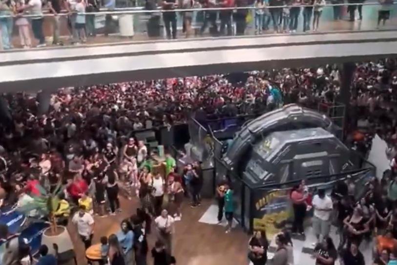 De acuerdo con reportes locales, el incidente ocurrió cuando desde uno de los niveles del recinto fueron lanzados billetes al público como parte de una actividad promocional. La situación provocó que decenas de personas corrieran hacia un mismo punto para intentar recoger el dinero.