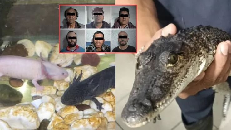 En el sitio se aseguraron aproximadamente 169 dosis de c0cain4, un cocodrilo de aproximadamente 70 centímetros de longitud, una iguana de un metro de largo, un ajolote albino y un ajolote melanoide, ademas de la det3nción de 6 hombres .