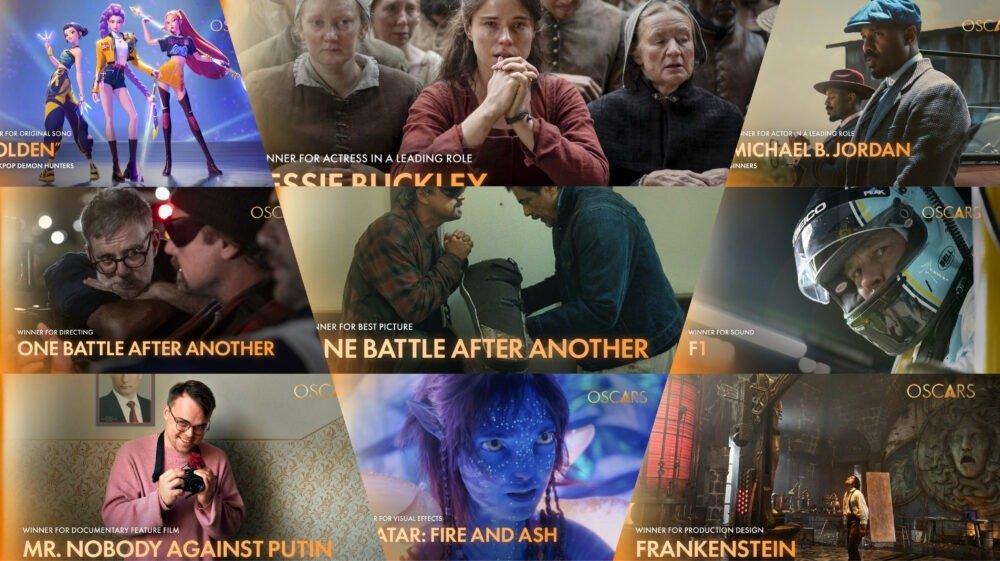 Durante la ceremonia también destacaron otras producciones premiadas en diferentes categorías. “Frankenstein” fue una de las películas con mayor presencia en los rubros técnicos, al obtener premios por Diseño de Vestuario, Maquillaje y Peinado y Diseño de Producción. En el apartado de efectos visuales, el galardón fue para “Avatar: Fire and Ash”.