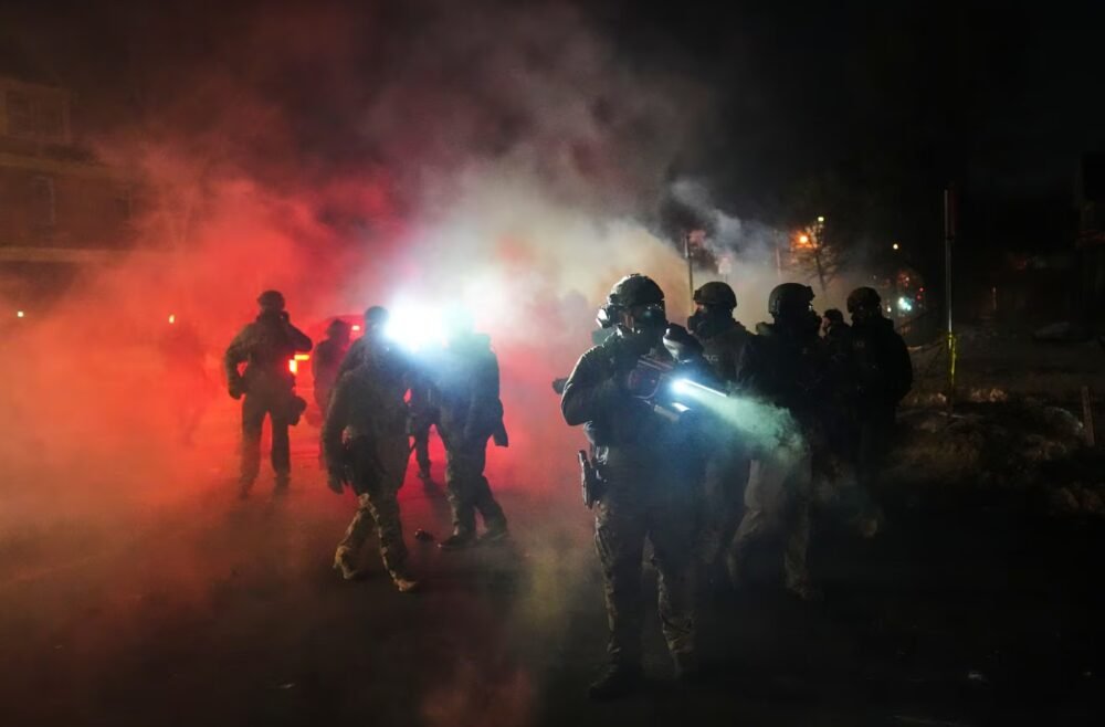 Minneapolis registra enfrentamientos entre manifestantes y fuerzas del orden el 16 de enero de 2026. La policía despliega gas lacrimógeno y granadas de aturdimiento frente al edificio federal Bishop Henry Whipple contra grupos que protestan por operaciones del Servicio de Inmigración y Control de Aduanas (ICE).
