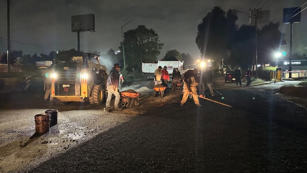 Los trabajos comenzaron la noche del 30 de septiembre y continuaron la madrugada del 2 de octubre, con el propósito de evitar interrupciones al tránsito vehicular hacia la Ciudad de México. Cuadrillas de rastrilleros, carretilleros, paleros, operadores de maquinaria pesada y supervisores participaron en las labores de fresado y tendido de asfalto.