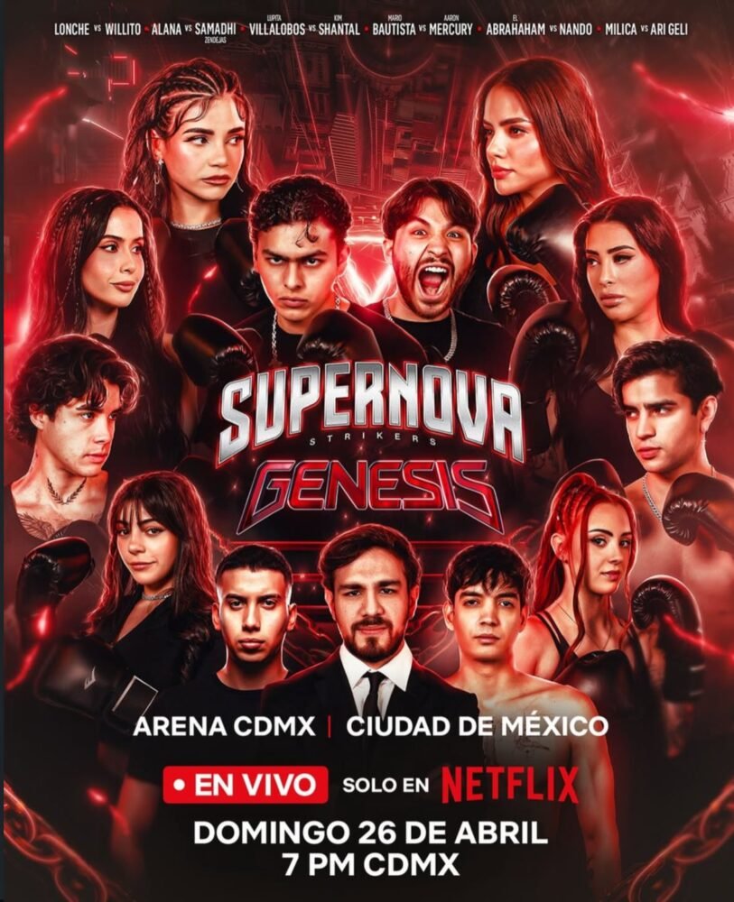 Supernova Genesis presenta su segunda edición de boxeo con creadores de contenido. El evento reúne varios enfrentamientos en la Arena Ciudad de México. Los participantes y combates confirmados incluyen: