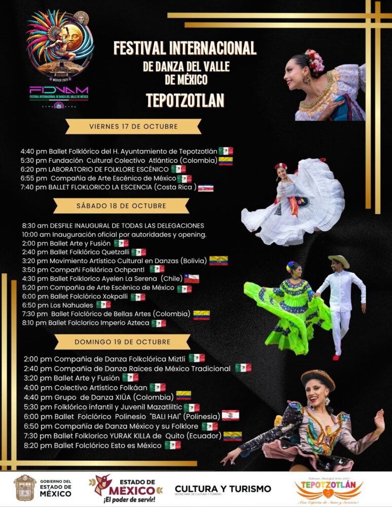 El Festival deleitará a chicos y grandes con su talento, magia y pasión por la danza a partir de este viernes a las 4:40 pm, el sábado a las 8:30 de la mañana y el domingo a las 2 pm. Tepotzotlán espera la presencia de miles de visitantes para disfrutar del Festival, que además contribuyan al dinamismo de la economía local.